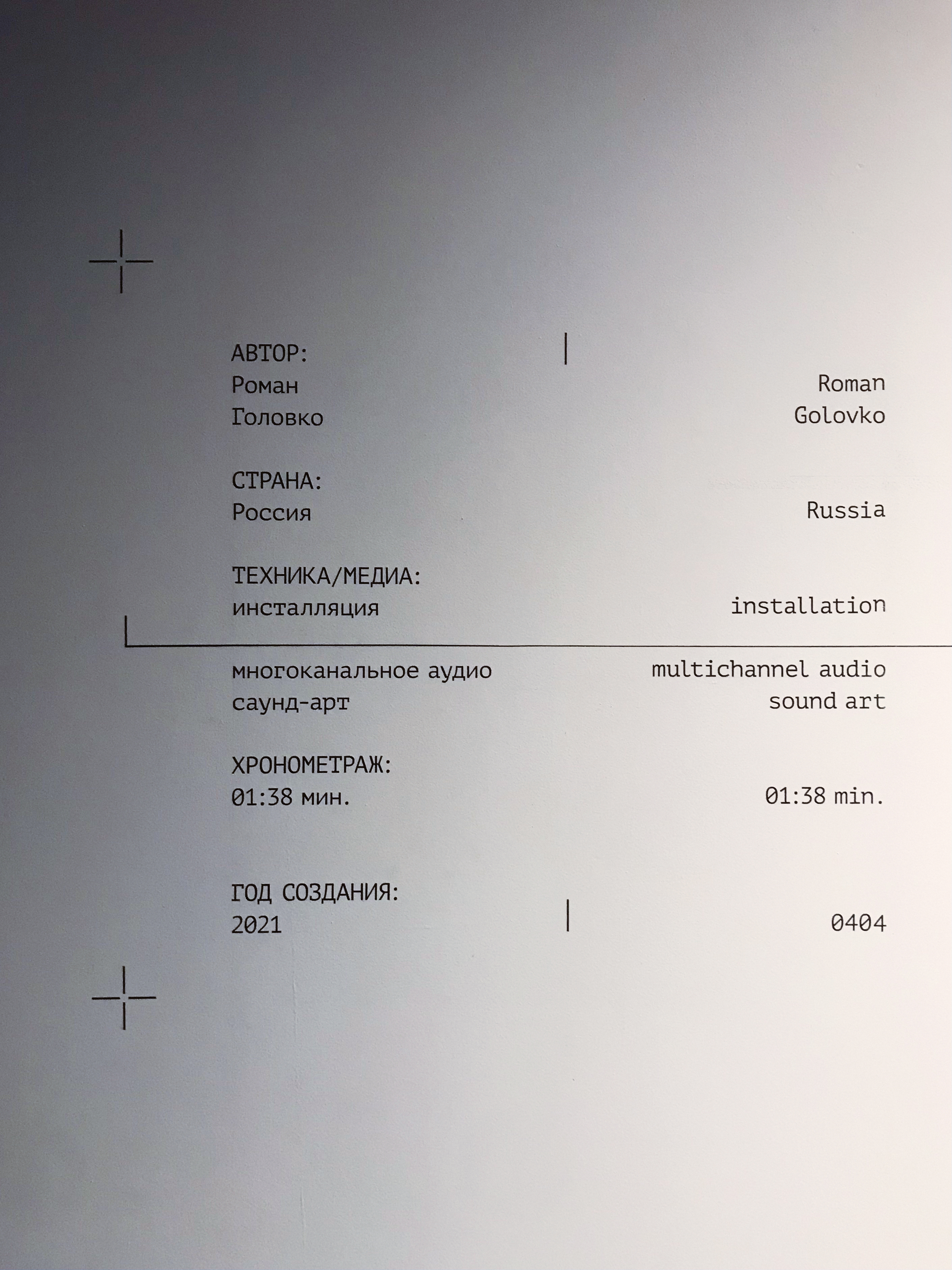 формат: инсталляция 3 m x 3 m (смешенная техника); 3D-печать; многоканальное аудио, саунд-арт композиция (01:38 min)