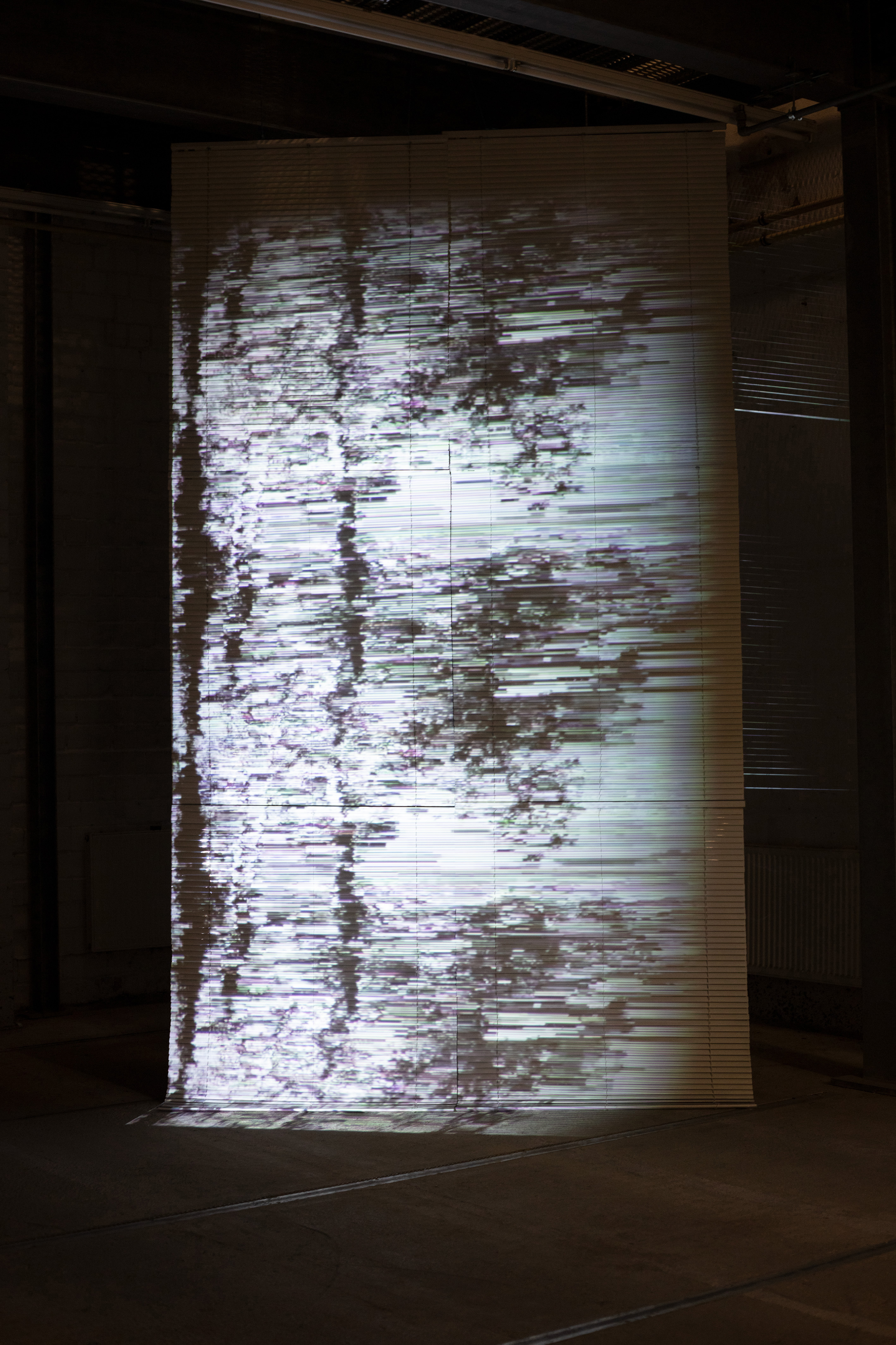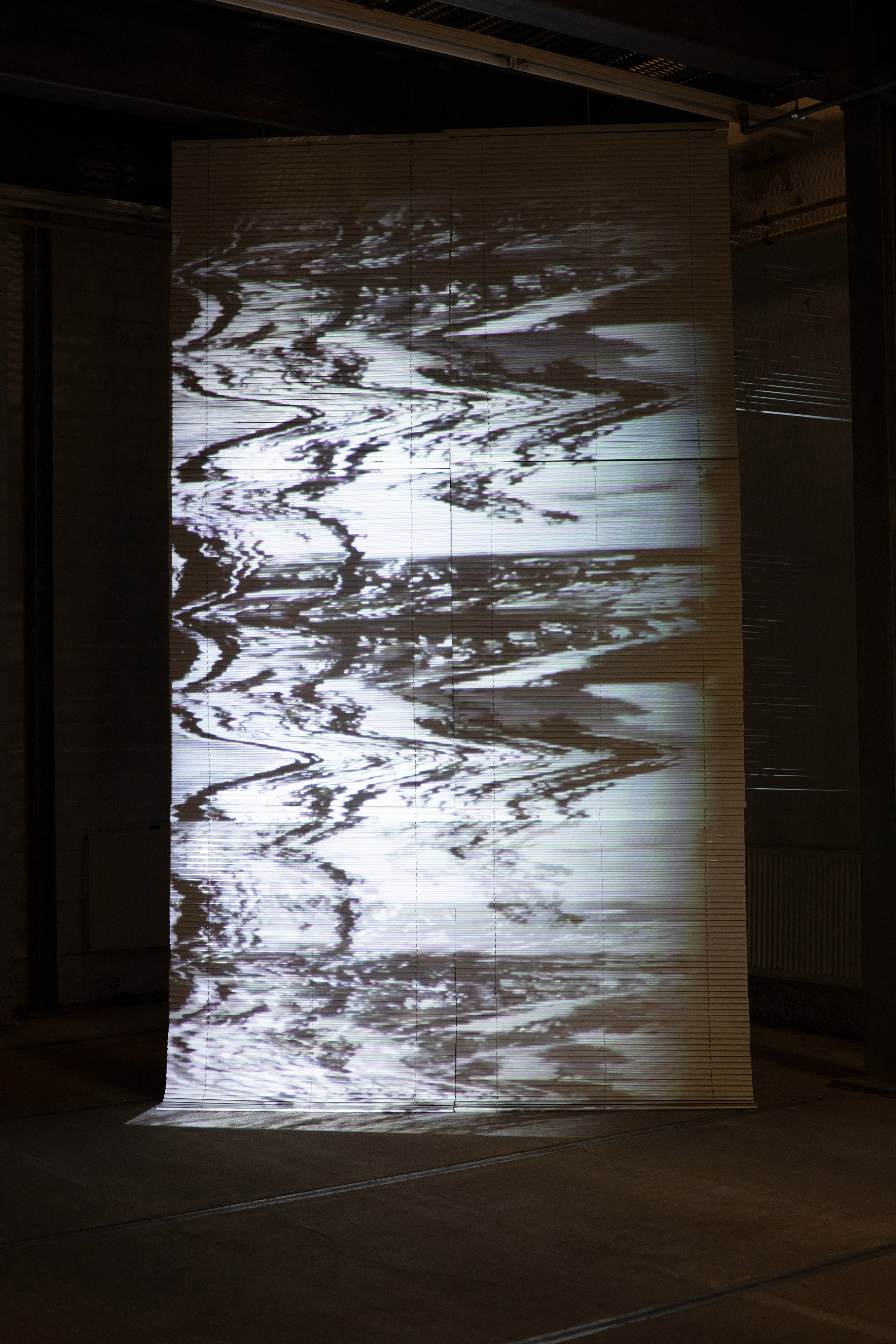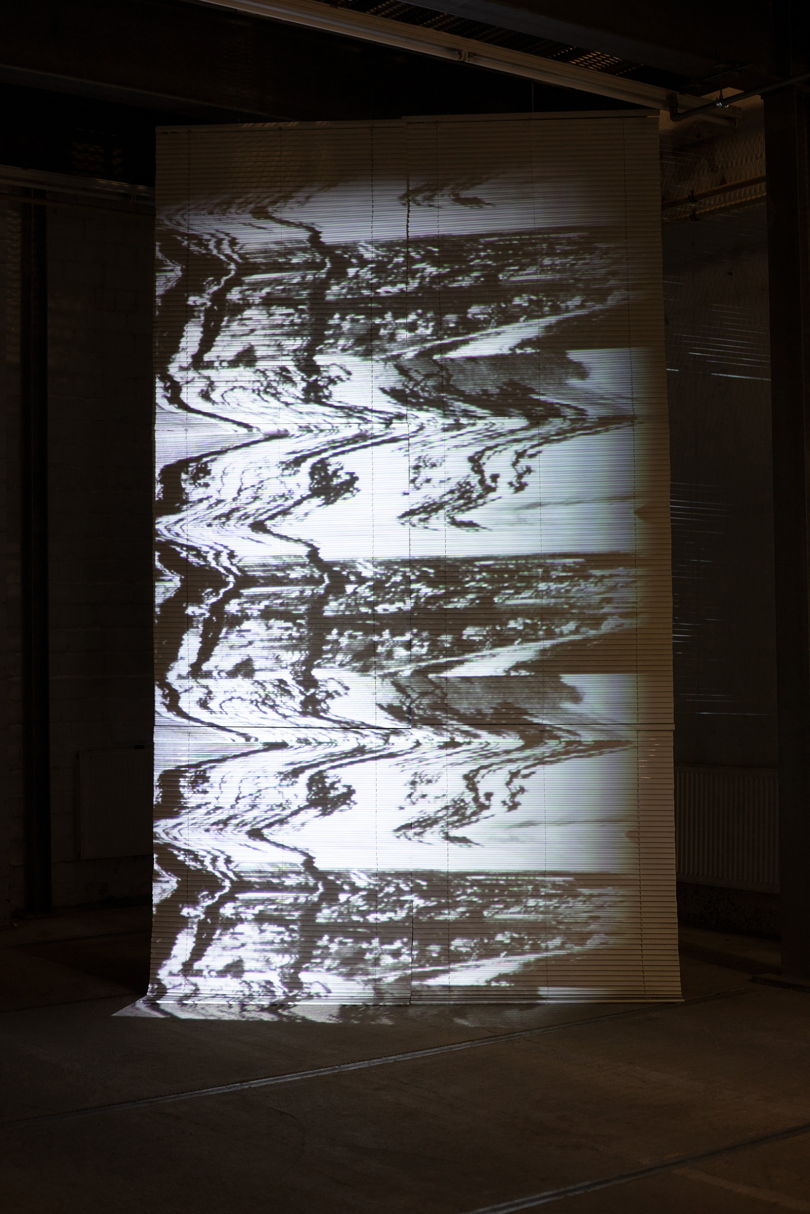 Generative video art is broadcast on the screen (assembled from closed window blinds), built on the idea of endless transformation - an unstoppable process of erasing old visual connections, establishing new ones and their further destruction, forming a time loop of an endlessly repeating event. OUROBOROS part of the REVERSE HETEROTOPY project
